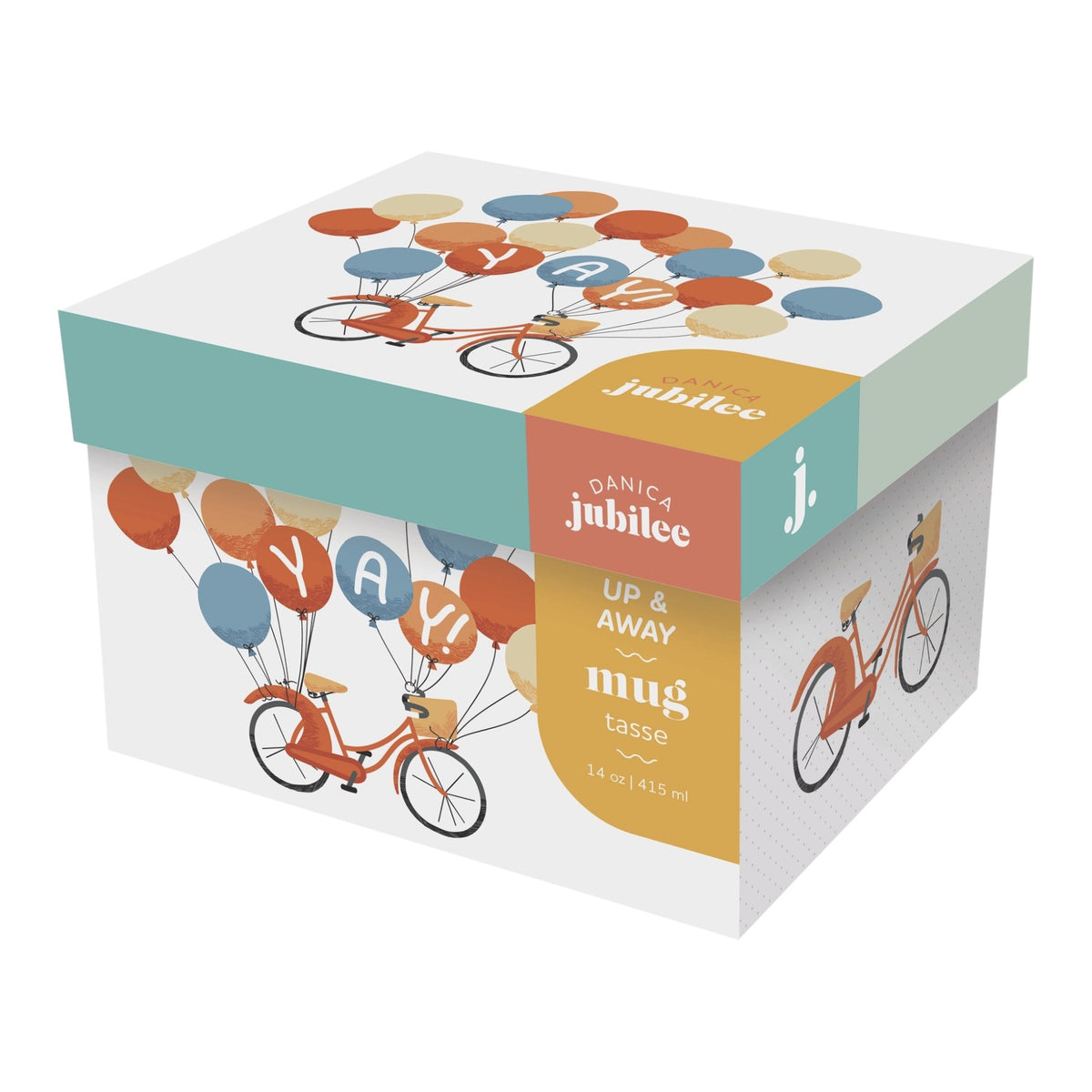 Delightful Design: Features a whimsical “Jubilee Up and Away” motif with balloons and a bicycle, bringing a touch of cheer to every cup.